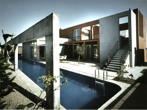 הבית הוא מערכת מרחבית המורכבת משני אובייקטים אורכיים המקבילים זה לזה. המנסרה האדומה, היא חלל המגורים, והחפירה, היא הבריכה.